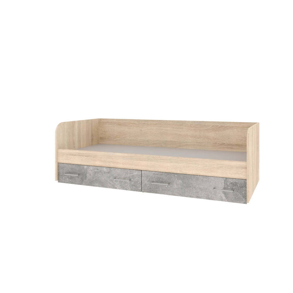 Спальня Колибри Лофт кровать с ящиками дуб сонома/ателье светлое+акрил белый