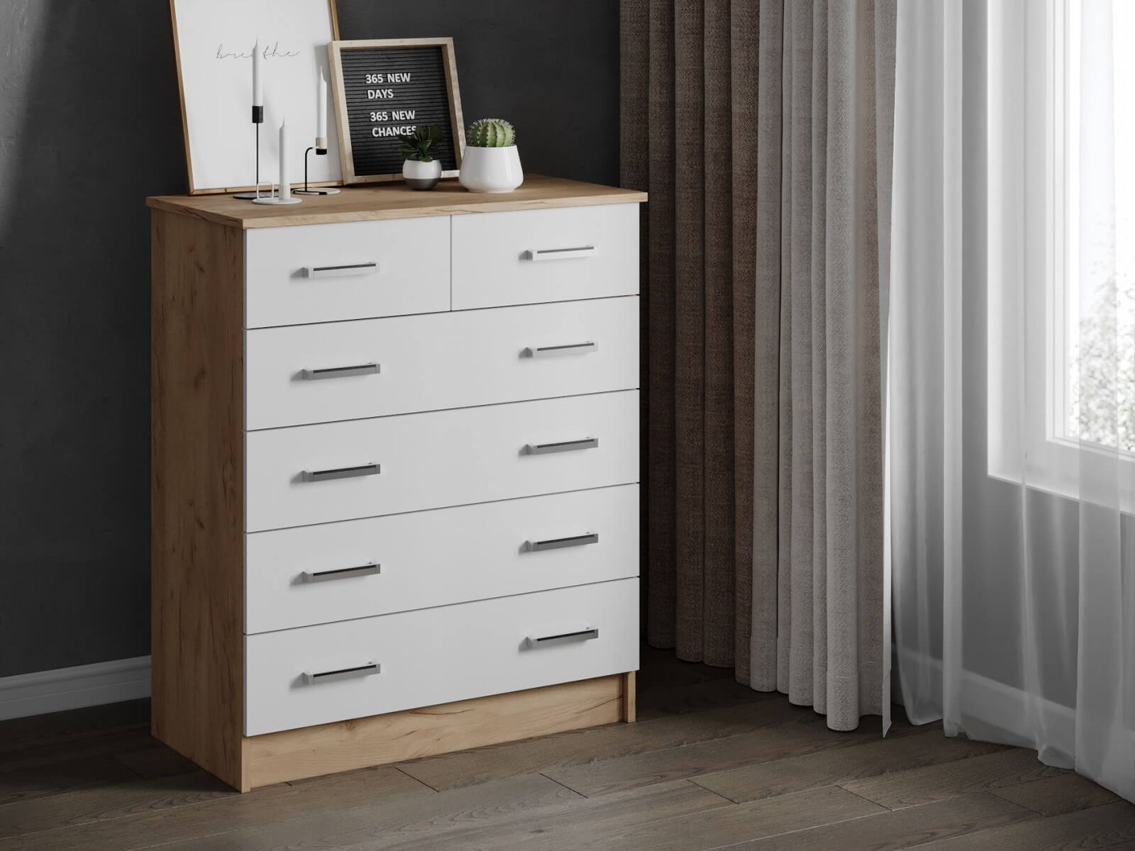 Комод Катрин-5 дуб крафт золотой/белый