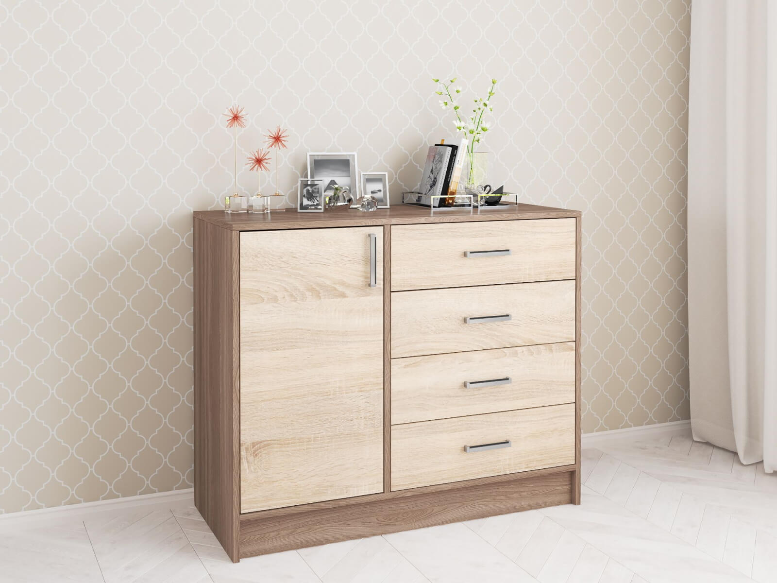 — Комод с двумя секциями: отделение с распашным фасадом и выдвижные ящики